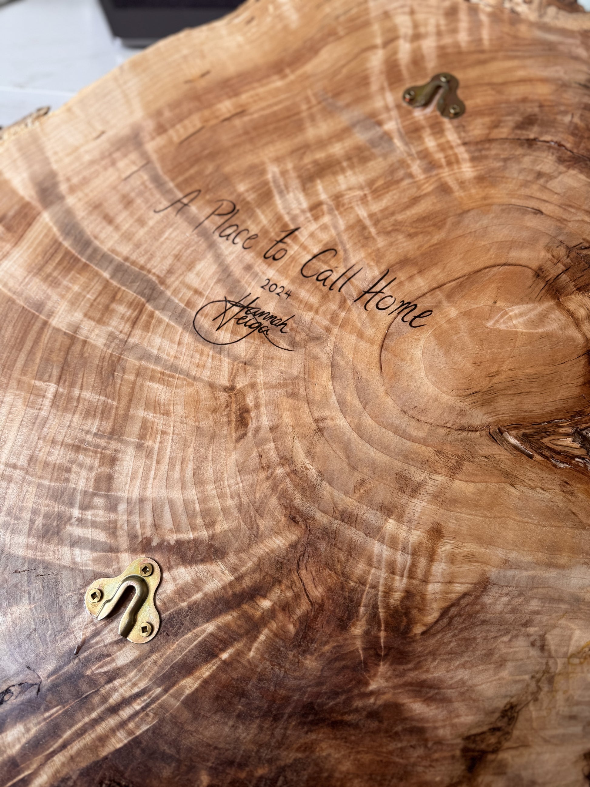 Images are high resolution and have been taken to showcase the artwork as accurately as possible. This piece of wood is a natural live edge, the dimensions stated are taken from the widest-longest measurements.