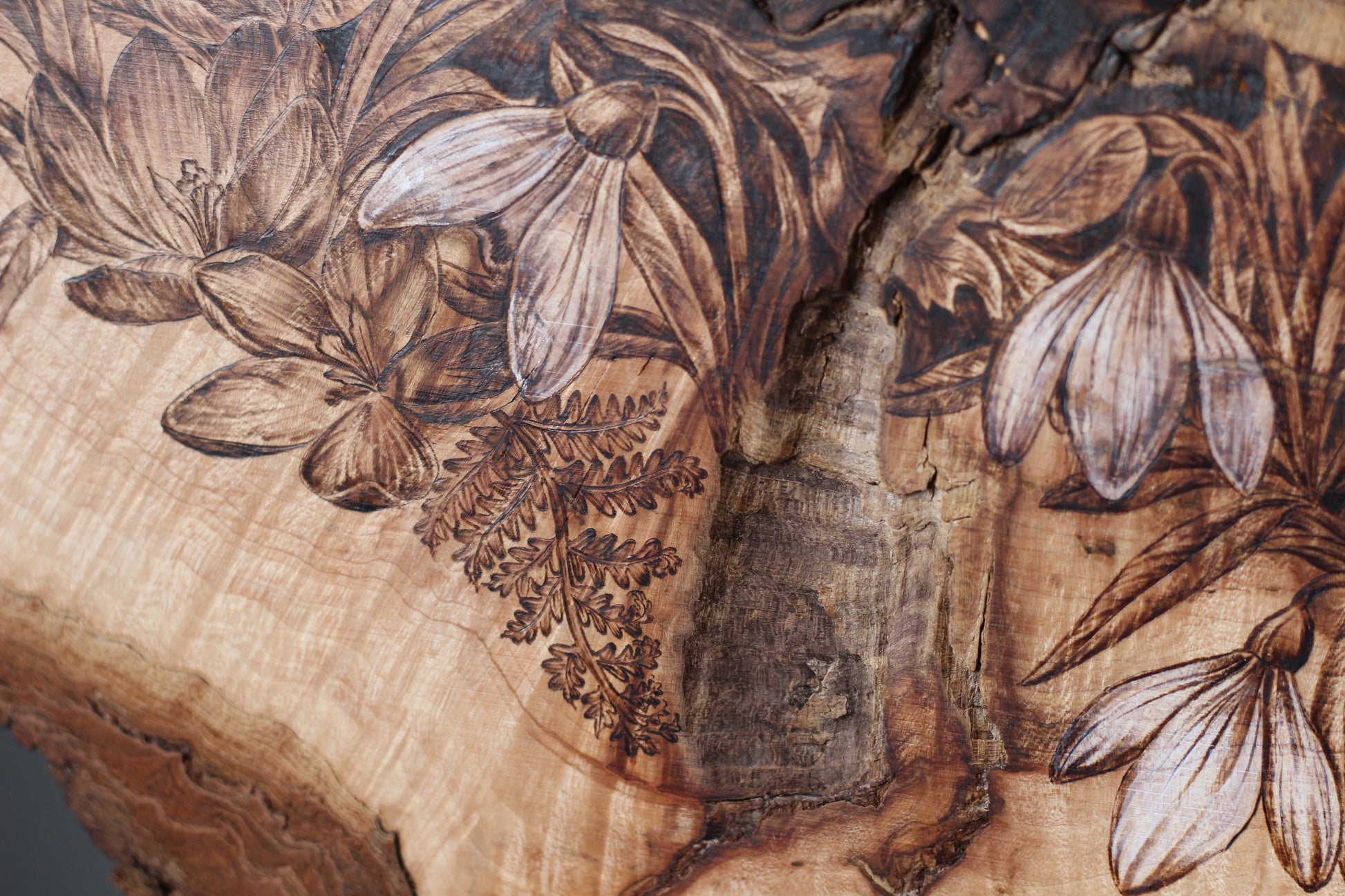 Meet The Slow Reveal, the first original wood burning of my limited series, "Coming Into Bloom".